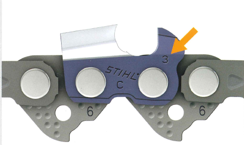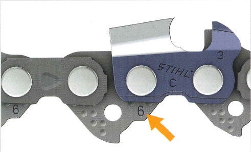 チェンのピッチはインチで表します。数字が、各カッターのデプスゲージのエリアに刻印されています。