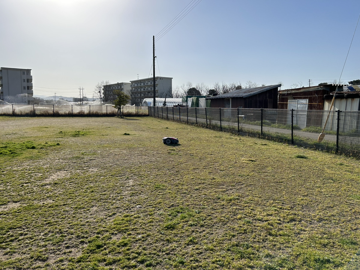 設置当初は地面の窪みにハマってしまって動けなくなったり、2つのエリア(フェンスで仕切られていて門扉でつながっています)のうち片方しか作業していなかったりとお客様にはお手数をおかけしましたが、一部エリアワイヤーの埋設し直しとオートモアの本体設定を行うことで対応させていただきました。