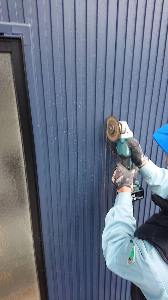 その墨線にそってグラインダーで切れ込みを入れていきます。